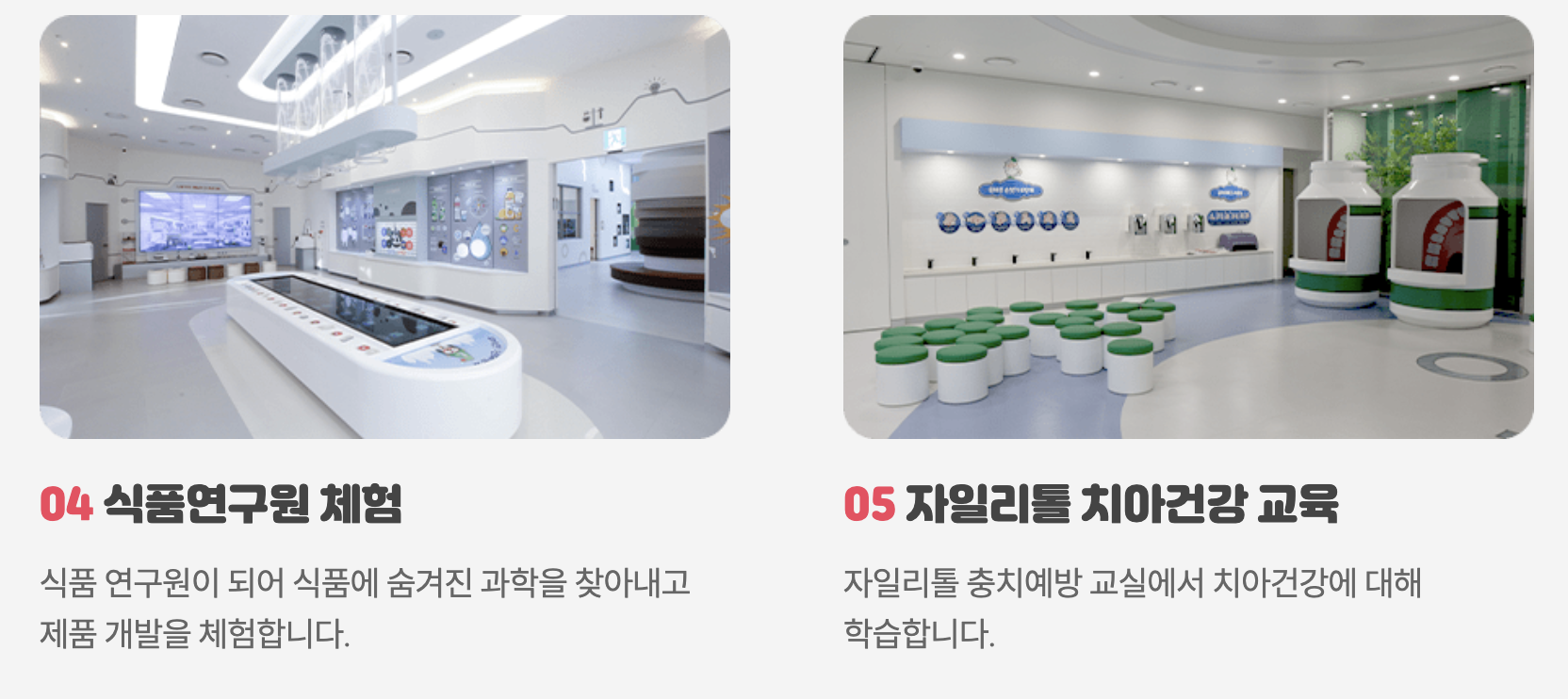 롯데 그룹 식품사의 연구개발과 품질 안전 관리를 담당하는 롯데중앙연구소가 운영하는 어린이 대상 Edutainment 체험 시설입니다.
