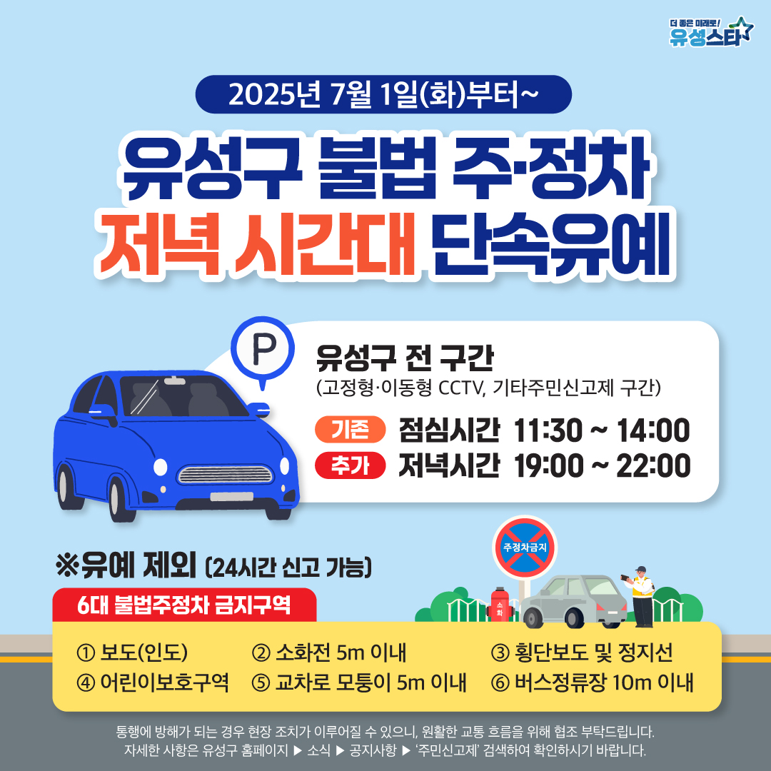 유성구가 지역상권 활성화와 주민의 주차 편의 증진을 위해 불법 '주·정차 단속유예'를 확대 운영한다는소식입니다.