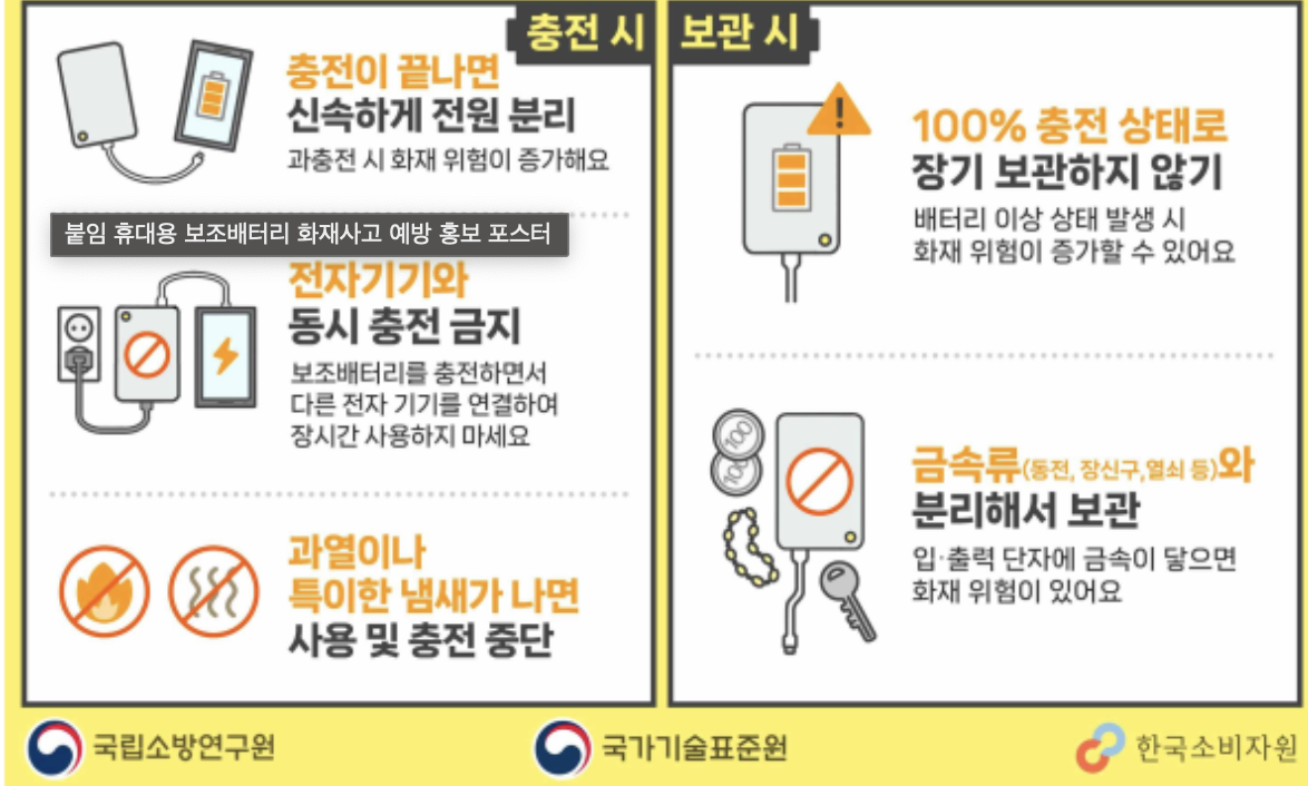 휴대용 보조배터리 화재사고 예방을 위한 안전 수칙 안내
