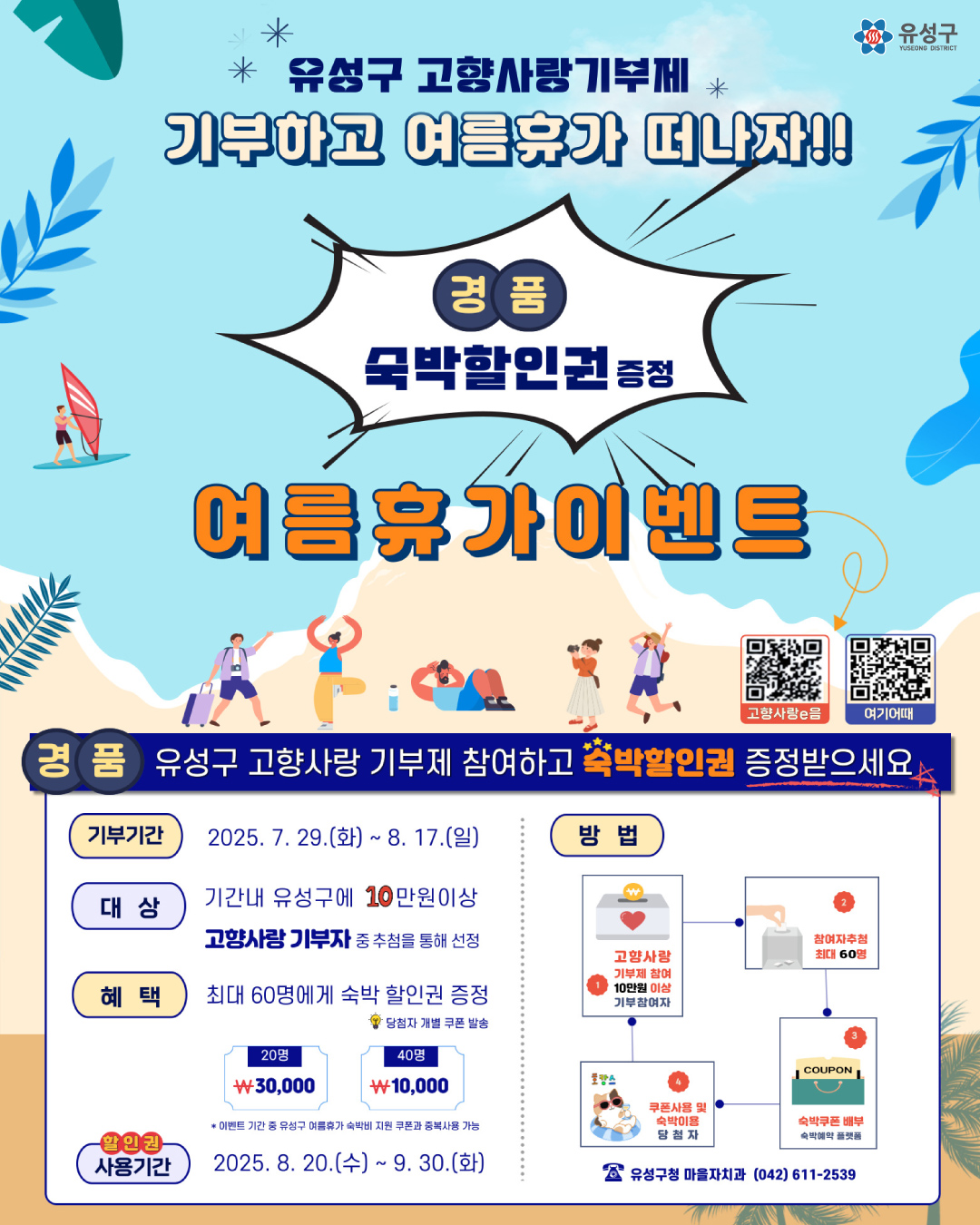 유성구가 여름휴가기간을 맞아 '고향사랑 기부제' 휴가 이벤트를 연다는 소식입니다.