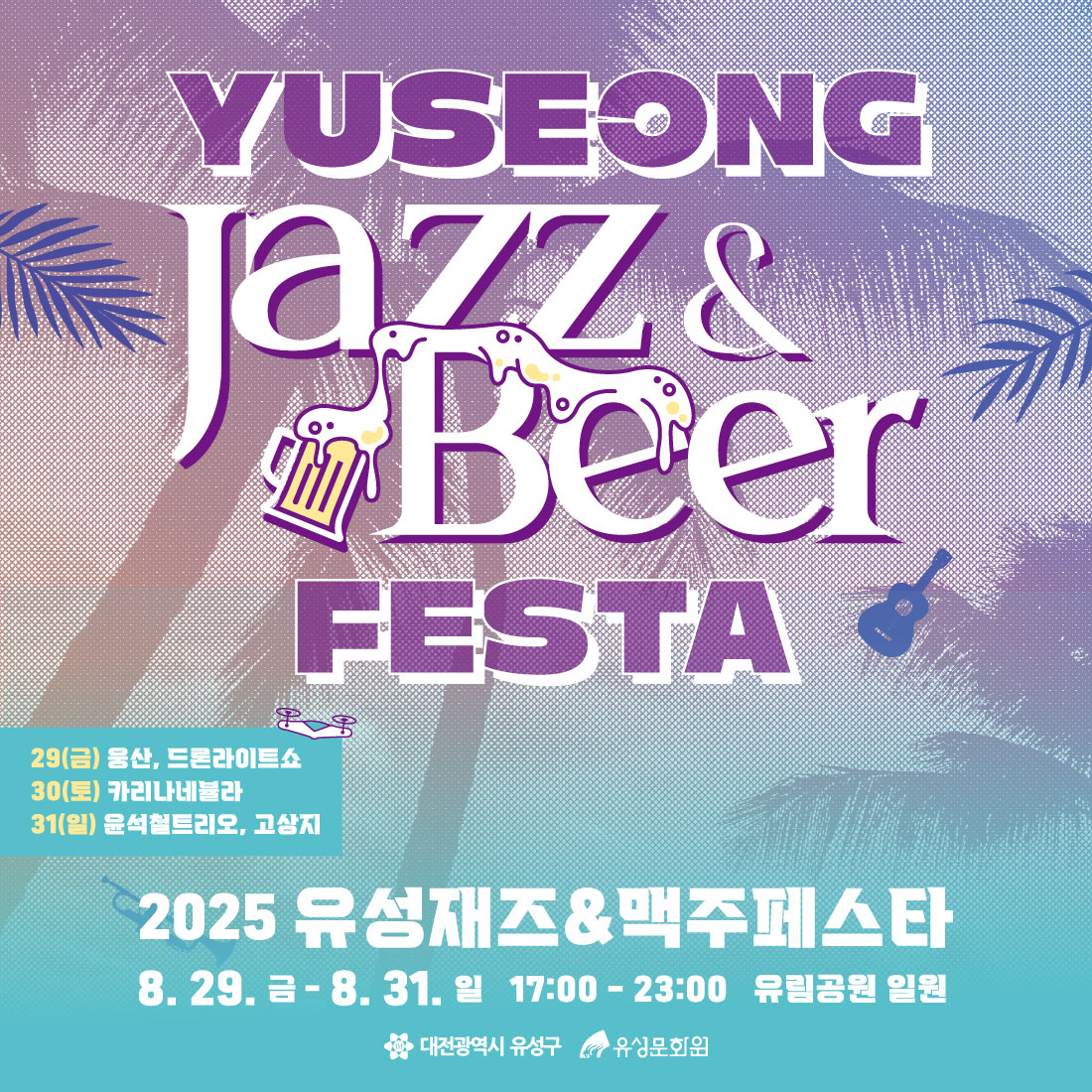 2025 유성 재즈&맥주 페스타가 오는 8월 29일(금)~31일(일)까지 유림공원 일원에서 열립니다.
