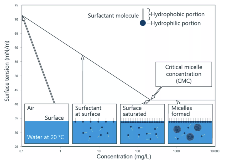 계면활성제는 일정 농도 이상에서 계면활성제 분자들끼리 모여 미셀(micelle)이라는 구조를 형성하며