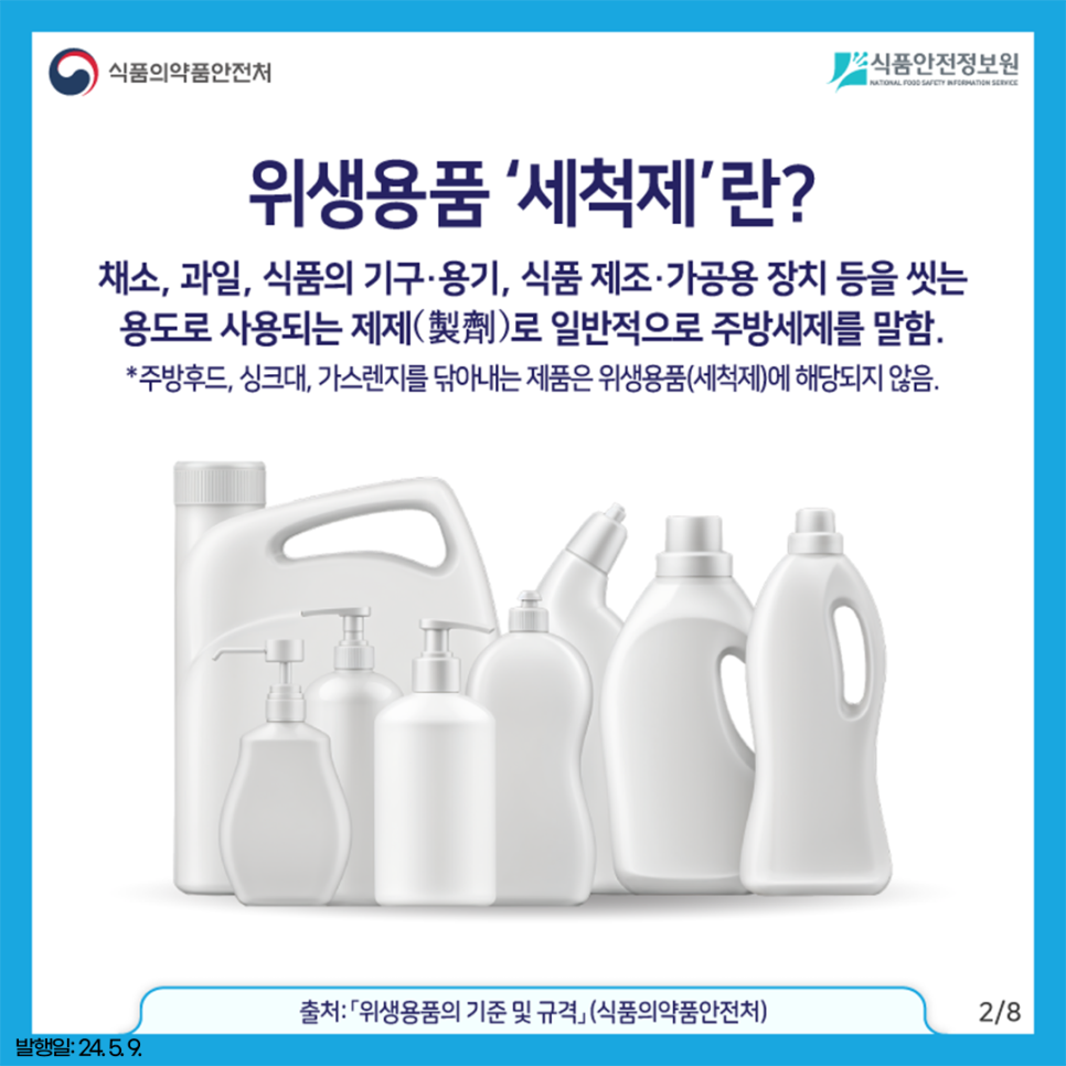 주방세제는 법적으로 '위생용품' 으로 분류되고 그중 '세척제'에 해당한다.